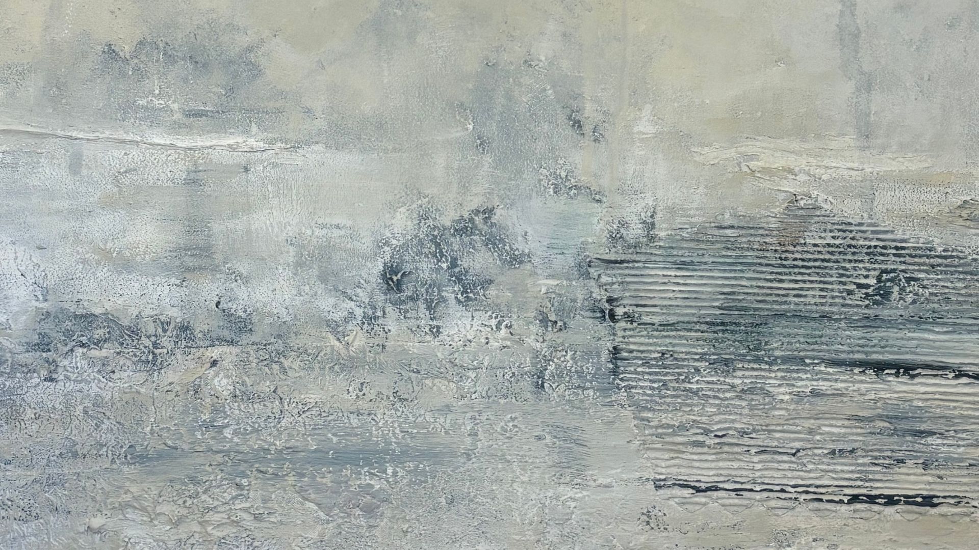 Trabajaremos con capas translúcidas, blancas, grises y toques dorados, creando un lienzo que transmite serenidad y brillo interior.